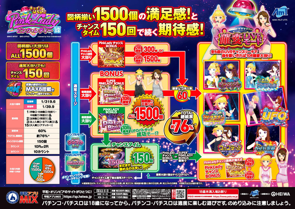 Musical Legacy: Enjoy a library of Pink Lady's songs as you play, with the music fueling the excitement and bringing a unique auditory dimension to the pachinko experience.